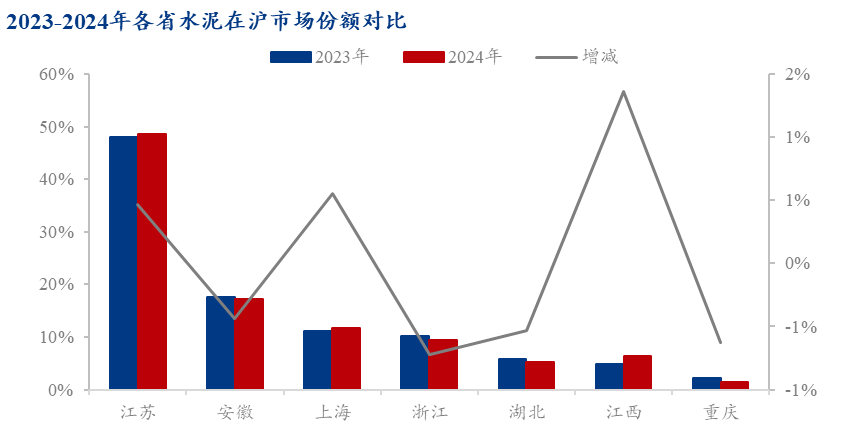 2024年上海水泥消费量2115万吨,不成小觑。因矿粉、粉煤灰市场需求萎缩,上海每年消费2000多万吨水泥,市政、工业建建占比有所上升。2025、2026年度配额采用碳排放强度节制的思分派,正在招投标中。