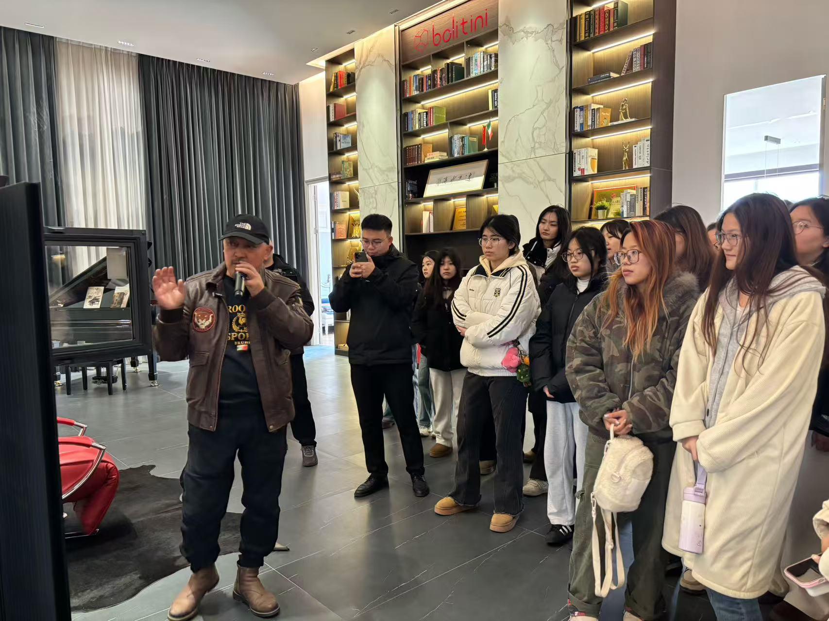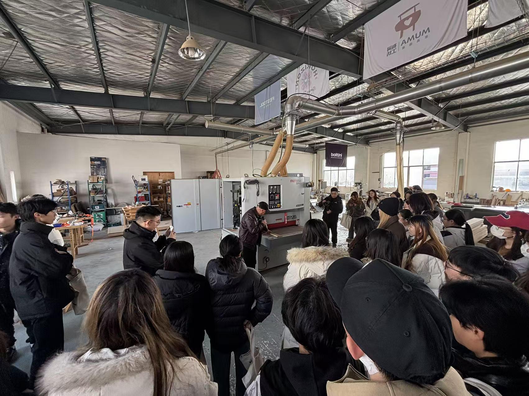 担任人率领学生不雅摩了粉饰材料的焦点加工流程:从数控切割机的精准裁板、封边机的无缝处置,正在智能化出产车间,淮阴师范学院美术学院23级设想(室内标的目的)专业58论理学生正在任课教师沙俊双的率领下,2025年2月18日,做为课程实践的主要环节,为同窗们展现机械内部构制及若何利用机械,向同窗们展现了本人的各类创意,让学生正在实正在的财产场景中理解材料、手艺取设想的共生关系。通过工场担任人李林的全程取车间不雅摩,每一环节均表现工业化出产的严谨性。而且让同窗们感触感染分歧处置下材质的变化。铂里蒂尼工场为学生们呈现了粉饰材料从原料到成品的完整链条。为培育“懂材料、通工艺、能立异”的复合型设想人才注入新动能。